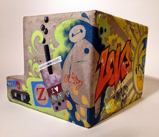 I've always dreamed about doing murals, especially on the sides of whatever house I currently inhabit (to the chagrin of my fellow inhabitants, at times). Never have I made good on those threats, until now. However, my first mural is on a much different scale than I ever expected, being completely contained within a tiny 7" concrete cube.